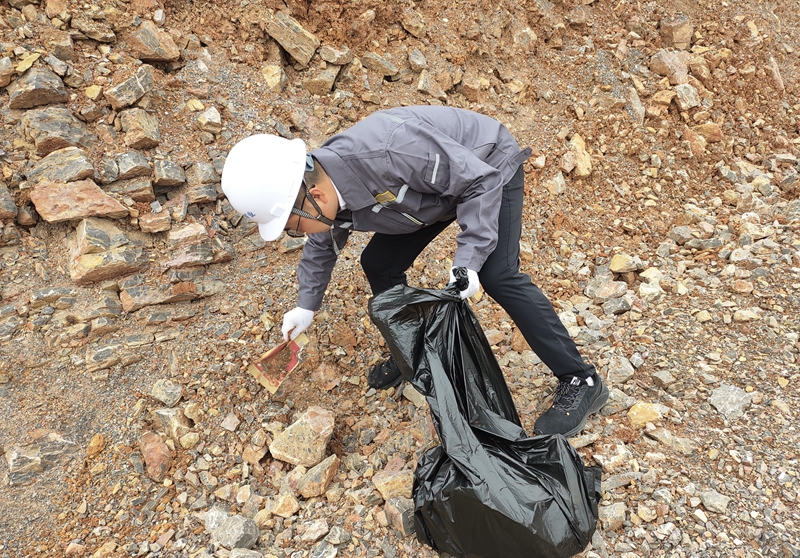 活動中,支部書記陳昌富作動員講話。在黨員同志的帶領(lǐng)下,大家積極參與,共同行動,對臨時表土堆場播撒草籽,復(fù)綠面積達25畝;對礦區(qū)內(nèi)平臺、道路等位置的環(huán)境衛(wèi)生進行集中整治,清理垃圾共20余袋。