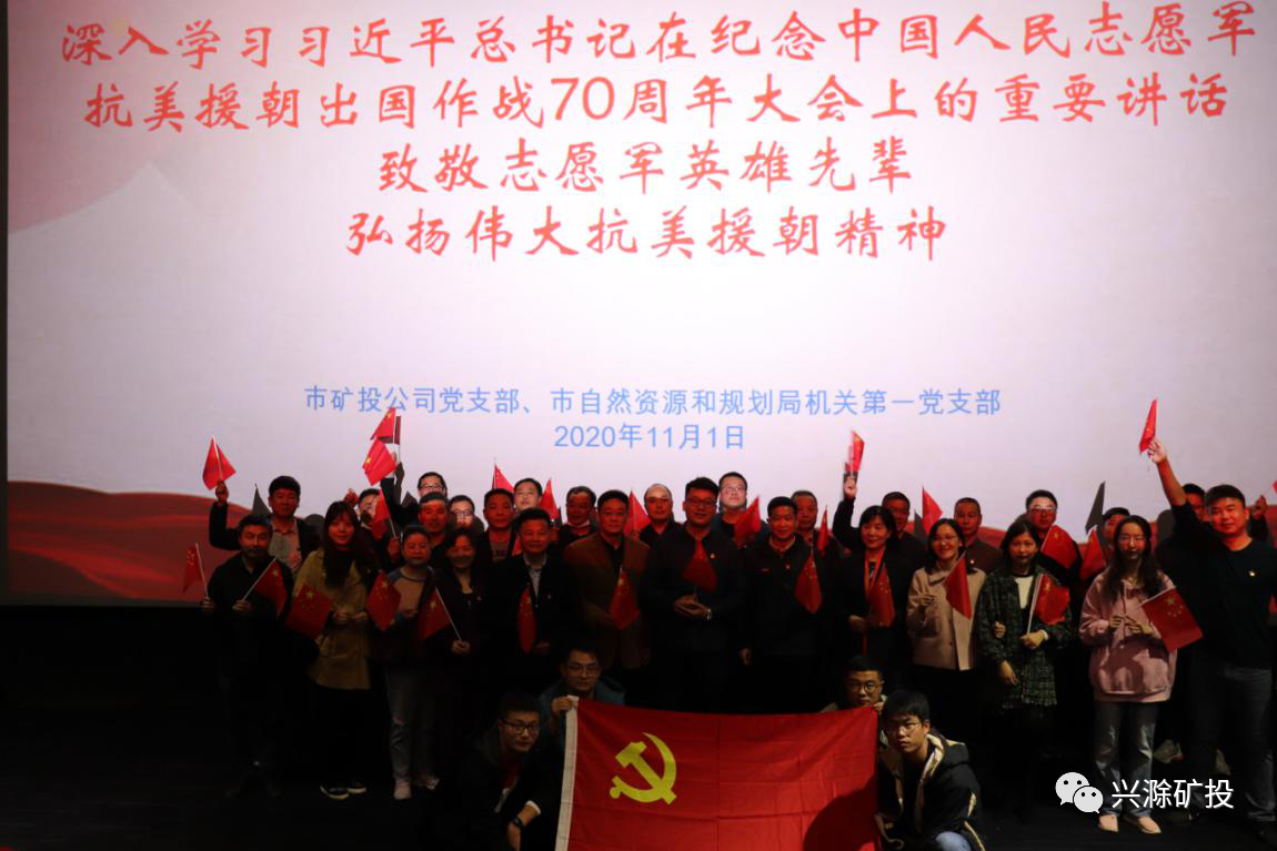 11月1日下午,市礦投公司黨支部聯(lián)合市自然資源和規(guī)劃局機關(guān)第一黨支部開展愛國主義主題教育活動,集中觀看習近平總書記在紀念中國人民志愿軍抗美援朝出國作戰(zhàn)70周年大會上的重要講話視頻和抗美援朝主題電影《金剛川》,共同緬懷中國人民志愿軍建立的不朽功勛,向創(chuàng)造偉大奇跡的志愿軍將士致以崇高敬意。