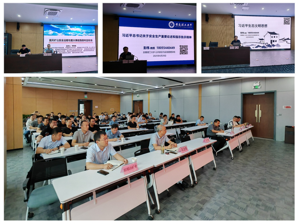 培訓(xùn)邀請(qǐng)了安徽理工大學(xué)公共安全與應(yīng)急管理學(xué)院副院長(zhǎng)彭偉、安全科學(xué)與工程學(xué)院研究生與實(shí)驗(yàn)室中心主任李重情進(jìn)行授課,課程包含習(xí)近平總書記關(guān)于安全生產(chǎn)重要論述、習(xí)近平生態(tài)文明思想、礦山行業(yè)有關(guān)安全生產(chǎn)法律法規(guī)、《金屬非金屬礦山重大事故隱患判定標(biāo)準(zhǔn)》等內(nèi)容。
